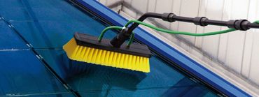 We have the latest technology in Water Fed Poles, "W.F.P." Water is fed through two separate filtration systems which filters the water to ZERO parts per million, final results- a super clean sparkling window... property management window washing Chula Vista El Cajon San Diego